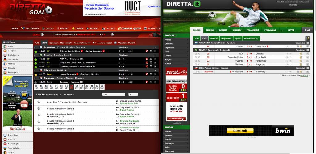 I tre siti analizzati, attualmente piu’ noti nel loro settore e precisamente,Direttagoal.it, Diretta.it e Livescore.com. Andiamo ad esaminarli nel dettaglio.