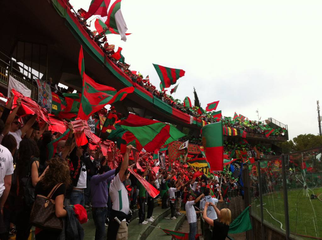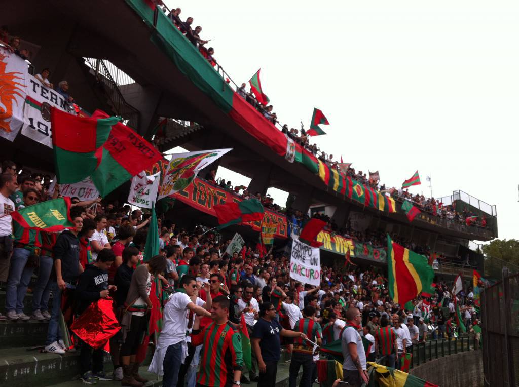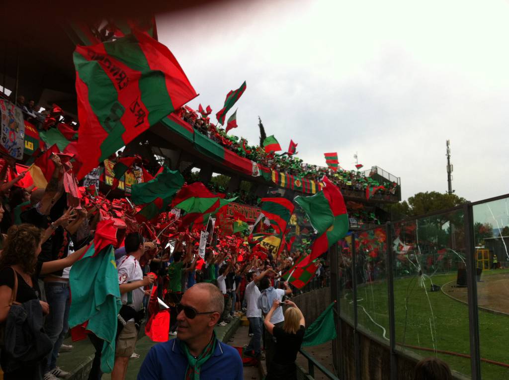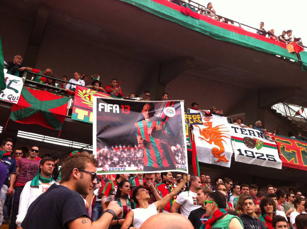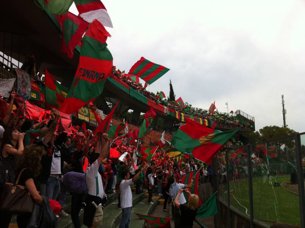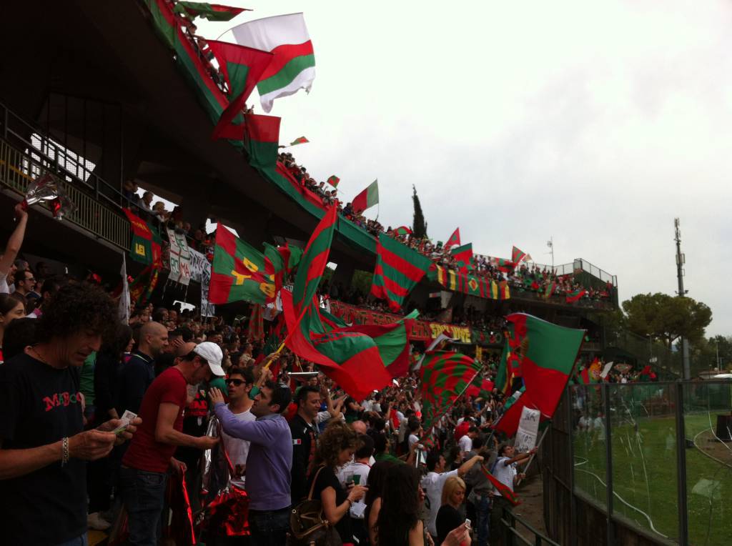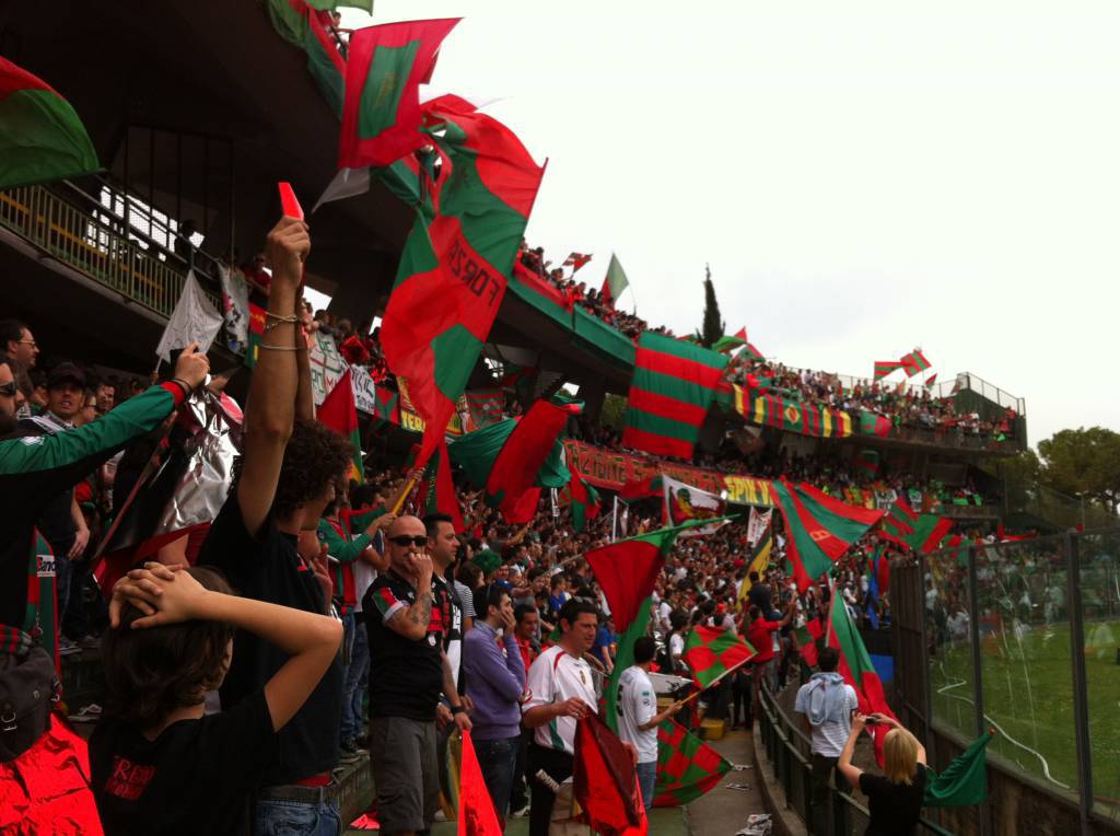 C’erano 9100 spettatori oggi al Libero Liberati ad assistere alla festa promozione della Ternana del condottiero Domenico Toscano. I rossoverdi hanno impattato 1-1 contro il Foggia nella penultima giornata del campionato di Lega Pro girone A. Un tripudio di bandiere, sciarpe, striscioni si è materializzato sugli spalti dello stadio gremito dai tifosi umbri. I giocatori hanno salutato i propri supporters con il giro di campo celebrativo conclusivo, per concedersi successivamente alla standing ovation della numerosa platea. Infine da sottolineare il tributo della Ternana ai propri sostenitori con la maglia numero 12 e lo striscione “Grazie Terni, Forza Fere”.