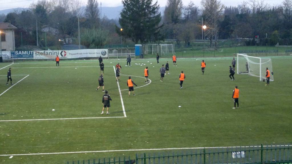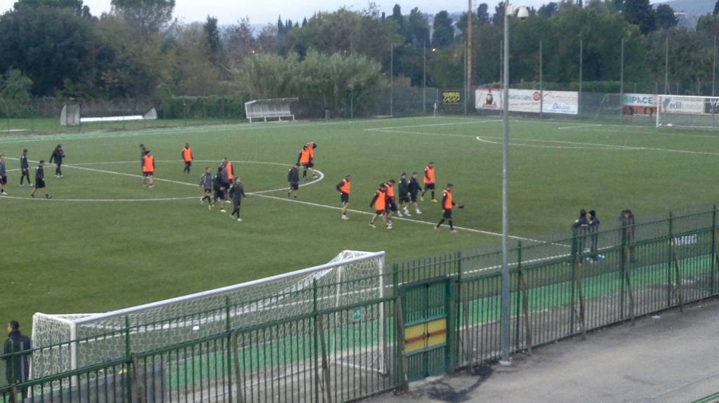 Prosegue la preparazione settimanale della Ternana, in vista del prossimo impegno di campionato al Liberati contro la Juve Stabia. I rossoverdi guidati dal tecnico Domenico Toscano si sono ritrovati anche nel pomeriggio per una seduta all’antistadio terminata con una doppia sfida a metà campo, a ranghi contrapposti. Nella prima circostanza si è trattato di un match a fraseggio libero, successivamente invece partitella a tema con la possibilità di utilizzare le sponde ai lati e massimo due tocchi ciascuno per i calciatori. Le indicazioni più interessanti le ha sicuramente fornite la prima dato che Matteo Ciofani è stato schierato dal suo tecnico al centro della difesa con Fazio (centro destra) e Ferraro (centro sinistra) ai lati. Potrebbe infatti essere questo il terzetto che si schiererà sabato pomeriggio al Liberati a cospetto delle vespe, con Brosco che scivolerebbe in panchina