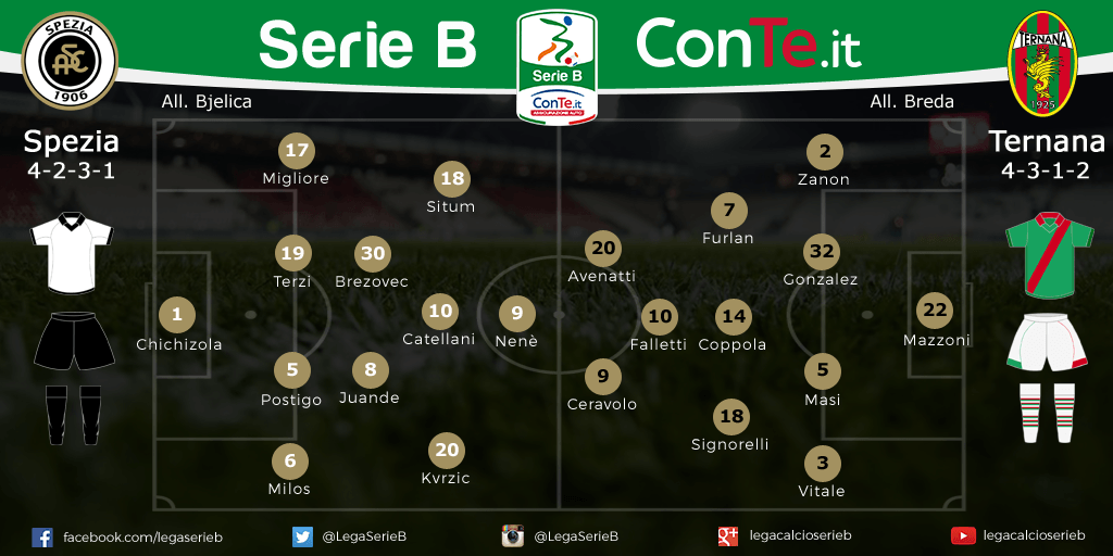 SPEZIA-TERNANA Le probabili formazioni della sfida in programma alle 15: