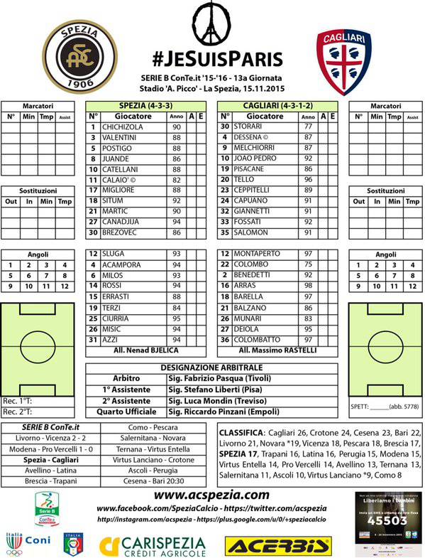 SERIE B Le formazioni ufficiali di Spezia-Cagliari: