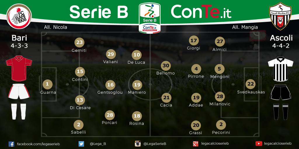 SERIE B Le probabili formazioni di Bari-Ascoli