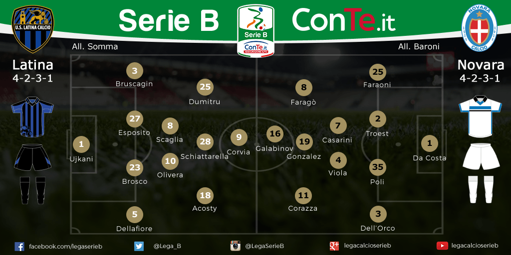 SERIE B LATINA-NOVARA Le probabili formazioni: