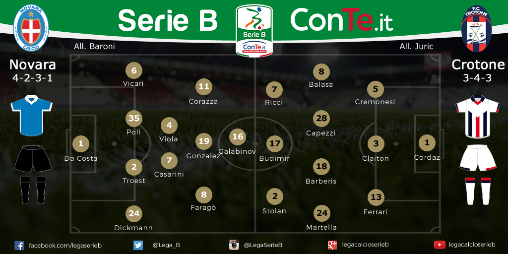 NOVARA-CROTONE Le probabili formazioni: