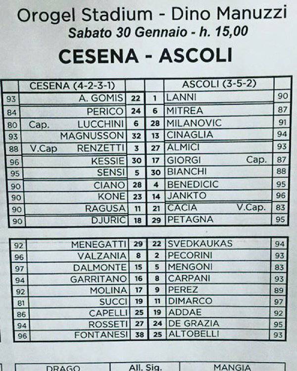 CESENA-ASCOLI La distinta ufficiale: