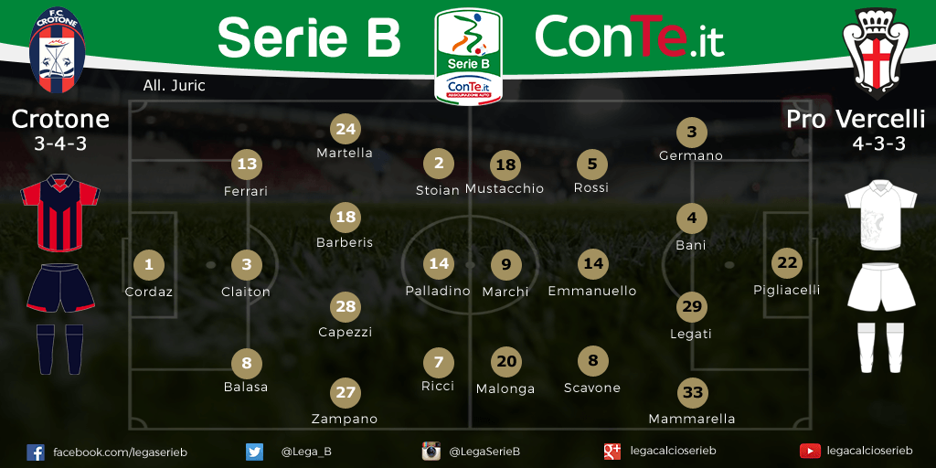 SERIE B CROTONE-PRO VERCELLI Le probabili formazioni:
