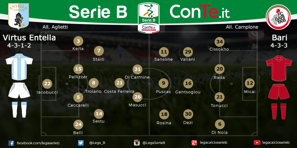 SERIE B Le probabili formazioni di Virtus Entella-Bari: