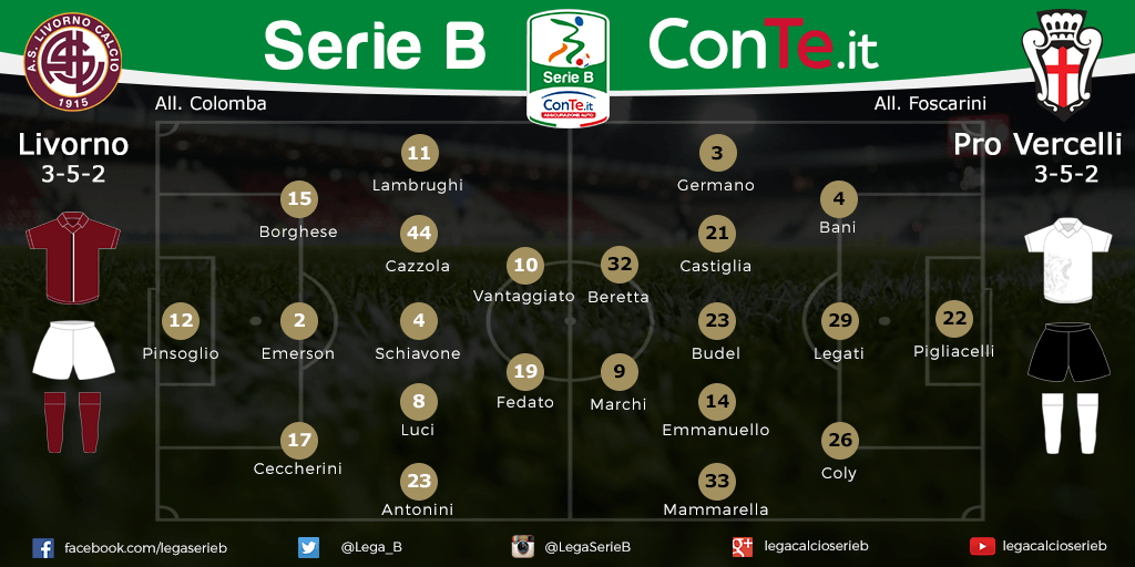 SERIE B Le probabili formazioni di Livorno-Pro Vercelli