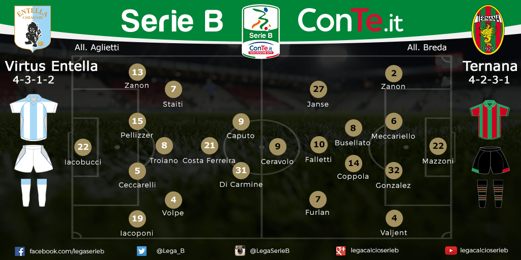SERIE B Le probabili formazioni di Virtus Entella-Ternana