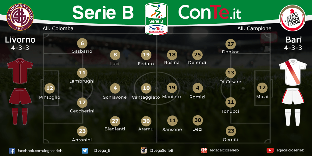 SERIE B Le probabili formazioni di Livorno-Bari