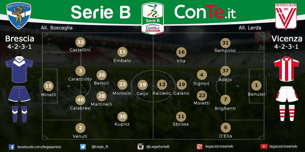 SERIE B Le probabili formazioni di BRESCIA-VICENZA match in programma allo stadio Rigamonti: