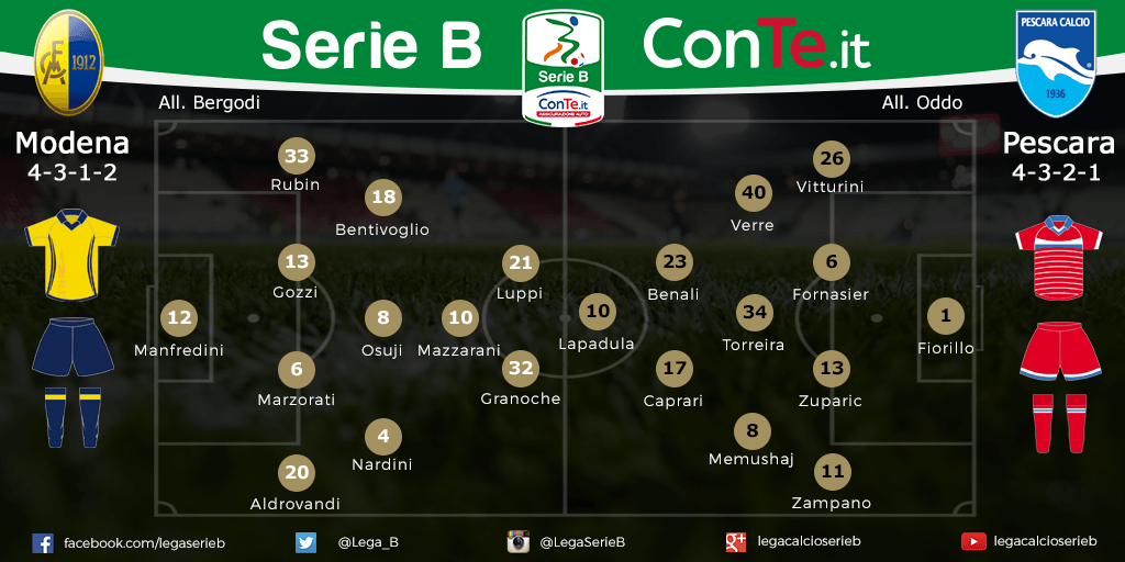 Modena-Pescara, le probabili formazioni 14/05/2016 - 11:10 di Tommaso M Ferrante Modena SERIE B Le probabili formazioni di Modena-Pescara foto Lega B