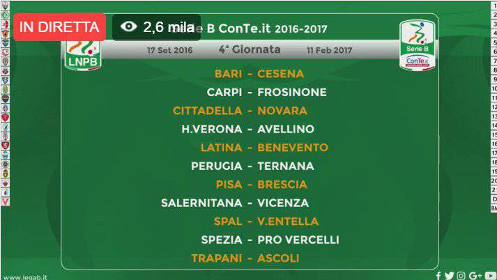 Serie B, la quarta giornata di campionato
