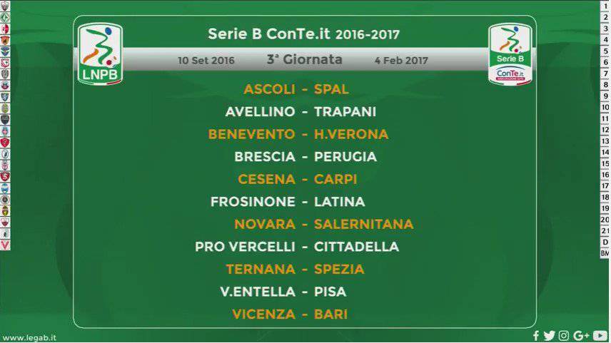 Serie B, la terza giornata di campionato