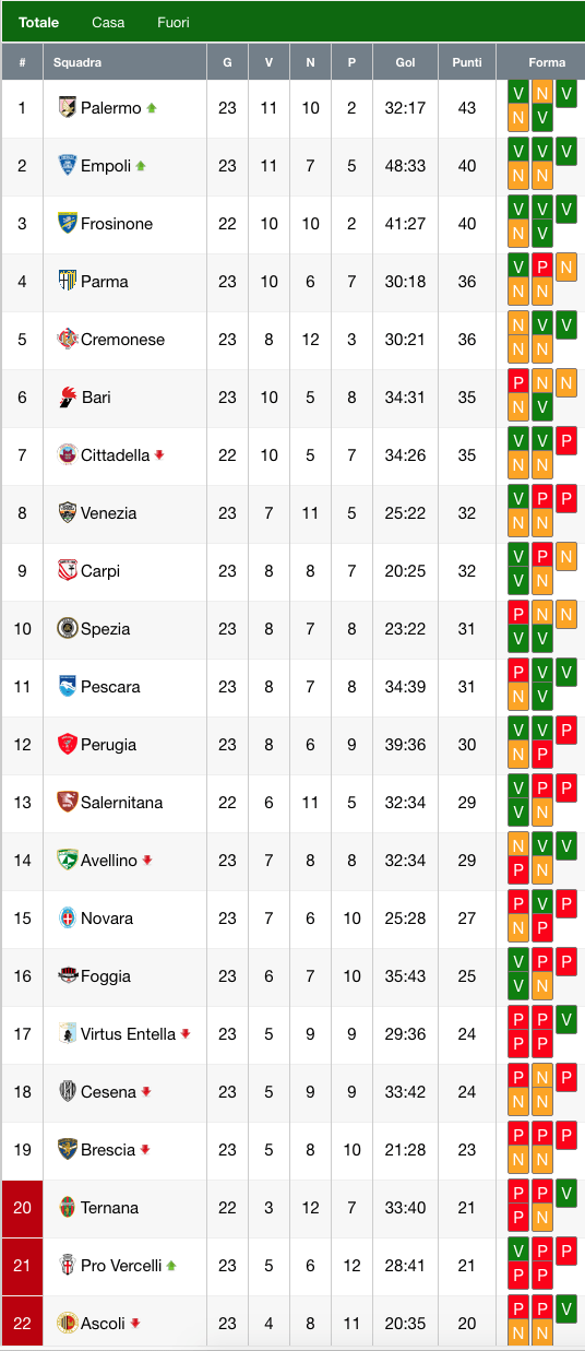 Serie B, risultati e classifica: l’Empoli sbanca il San Nicola 28/01/2018 - 00:13 di Matteo Fantozzi Matteo Brighi – Getty Images SERIE B RISULTATI E CLASSIFICA – Ecco i risultati: Ecco la classifica: