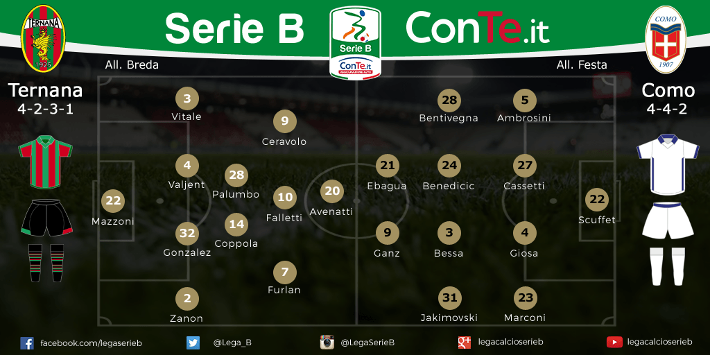 Ternana-Como, le formazioni ufficiali